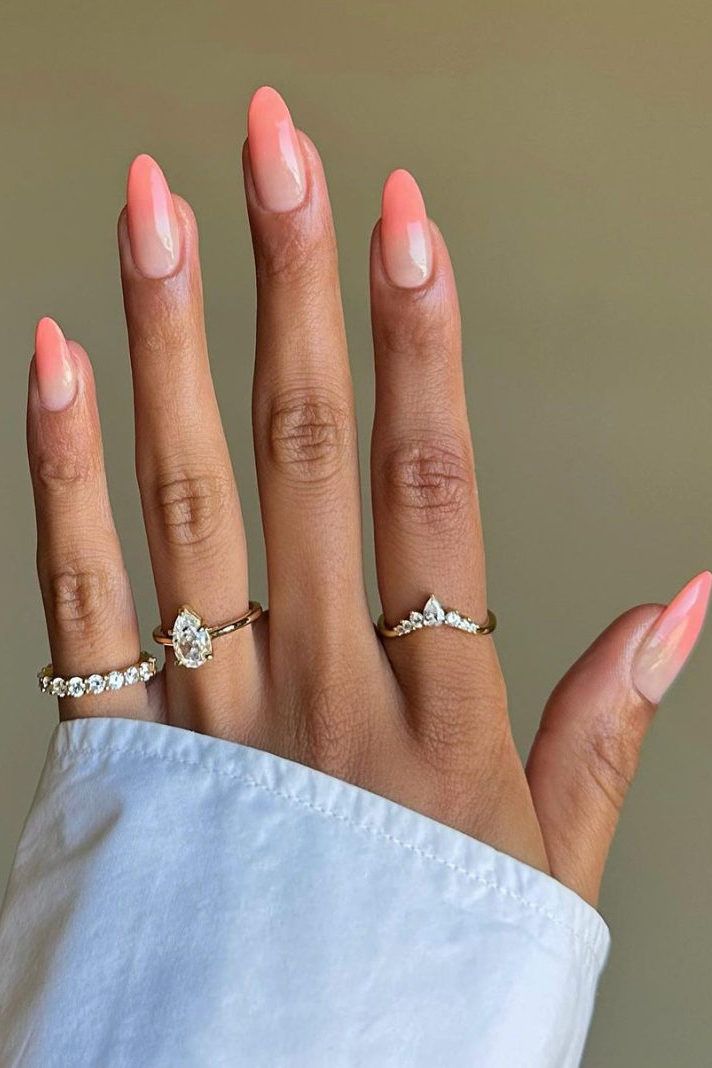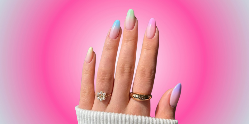 L’ombré pastel est un incontournable du printemps 2026. Cette tendance permet d’associer plusieurs teintes de saison tout en conservant une harmonie visuelle. Le dégradé peut être réalisé sur un seul ongle ou se prolonger d’un ongle à l’autre, avec des nuances passant du rose au lavande, du bleu ciel au pêche… Cette manucure peut aussi être revisitée avec une finition glossy, nacrée ou légèrement pailletée pour apporter une touche plus contemporaine en restant fidèle à l’esprit frais et printanier de la saison.